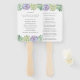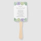 Botanical wedding program hand fans with a top and bottom border consisting of green and purple watercolor succulents on the front and a top border on the back. Your details are in a soft grey font. Add your ceremony events to the front and your wedding party and optional thank you message to the back. These hand fans will help keep your guests cool during an outdoor wedding and provide them with the order of service. These also make for a great souvenir and are perfect for a desert wedding in the spring or summer