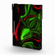 Image with green and red curves with light shades in some parts, and thus referring to some shiny material like metal.