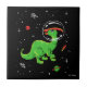Green And Red Parasaurolophus Dinos In Space Tile