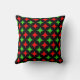 Green and Red Star Pattern on Black Throw Pillow