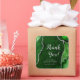 This elegant and glamourous birthday thank you sticker features a green agate marble background with faux silver glitter accents. The text combines handwritten script and modern sans serif fonts for a classy and sophisticated look. This will be perfect for autumn fall and winter birthday parties.