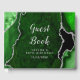 This elegant and glamourous birthday party guest book features a green agate marble background with faux silver glitter accents. The text combines handwritten script and modern sans serif fonts for a classy and sophisticated look. This will be perfect for an autumn fall and winter birthday party.