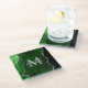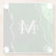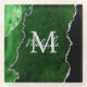 This coaster features an elegant and glamourous agate marble background with geode gemstone detailing and faux silver glitter accents. The monogram combines handwritten script and modern sans serif fonts for a classy and sophisticated look. This will make the ideal gift as it can be customized with a name and initial. The deep green hues make it perfect for autumn fall and winter.