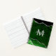 This notebook features an elegant and glamourous agate marble background with geode gemstone detailing and faux silver glitter accents. The monogram combines handwritten script and modern sans serif fonts for a classy and sophisticated look. This will make the ideal gift as it can be customized with a name and initial. The deep green hues make it perfect for autumn fall and winter.