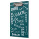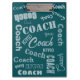 Green and Silver Personalized Coach Gift Name Art Clipboard