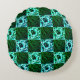 Green and sky blue or cyan chequerboard, with small angled rectangles and light and dark tones that can cause a perception of metallic bits and depths.