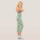 Green and Teal Modern Geometric Flower Pattern Capri Leggings