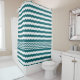 A graphic horizontal chevron design in shaded spruce, a dark green, decorates the shower curtain. The background colour is exchangeable. The design is available for all Zazzle products. If it is not yet available or you have an enquiry about a customized design use the contact button below.