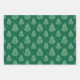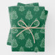 Green and White patterned wrapping paper featuring a seamless repeating pattern of modern, geometric Christmas tree graphics