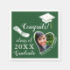 Create unique green and white graduation napkins for the class of 2025 graduate with a heart-shaped photo (use the template to upload your picture), Congrats saying, and grad's cap and diploma illustrations. It's easy to change the background colour inside the design tool to match your school colours. Please, personalize with the graduate's name and surname, upload a custom photo, and add a year before ordering.