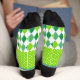 Celebrate St.Patrick's Day with these whimsical, crazy patterned socks. These socks feature four different green and white patterns, with neon shamrocks.