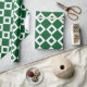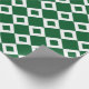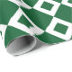 A bold, graphic pattern of interlocking green and white diamond shapes. The white diamonds each contain a small green diamond making green the dominant colour of the geometric design.