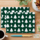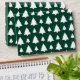 Destei's original pattern of simple white Christmas fir tree silhouettes on a green background colour.