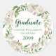 Embellish your graduation invitations, announcement and graduation party invites with a pretty envelope seal. White roses and peonies join with greenery to create a pretty wreath. Graduate is written in a popular script green font. The grad's name, school and graduation year follow - also in create. You can edit all of the text - including the text colour and font. The background colour can also be changed.