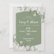 This is a wedding invitation in a simple and elegant design. The green and white colour palette is perfect for a spring or summer wedding. The elegant font with delicate flowers and vines will match any spring or summer wedding theme.