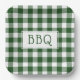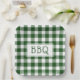 Get ready for your barbecue party with paper plates featuring a classic dark green and white buffalo plaid with the letters BBQ in a white rectangle in the centre.