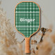 Green and White Gingham Pattern Modern Monogram Pickleball Paddle