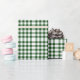 Dark green, white, and light green squares form a bold, checked plaid. The green and white gingham pattern was created from scratch.