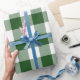 Dark green, white, and light green squares form a bold, checked plaid. The green and white gingham pattern was created from scratch.