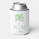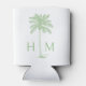 Green and White Palm Palmetto Tree Monogram Can Cooler