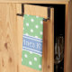 Green and White Polka Dot With Blue Personalized Kitchen Towel