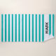 A striking striped beach towel with green and white stripe pattern. Personalize with your name.