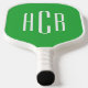 A simple Kelly green and white three letter monogram design on one side of your pickle ball paddle.