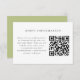 This enclosure card lets your guests know that all of the information about your wedding (like hotel blocks, out of town guest information, and a wedding event timeline) traditionally included on various different paper enclosure cards is now available online via your wedding website by scanning this personalized QR code with any smart phone. The backer is a solid, coordinating sage green to add more grandmillennial style.