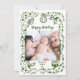 Happy Holidays Photo card personalized with your names and photo. A festive hand drawn whimsical wreath. Perfect for families who want to combine a personalized photo with timeless and elegant Christmas style. This holiday card blends personalization, and festive mood.