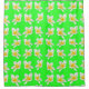 Pictured on lime green are yellow Frangipani flowers in a pattern