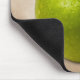 Closeup view of a single green apple. The apple is wet and heavily covered with drops of clean water. Customizable text An apple a day... Funny mousepad for anyone.