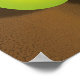 Print in a digital illustration of a green apple-and-a-half on a textured, coffee brown background