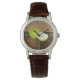 I like the illustrative watch with the lady on it. It is a great reminder that I am blessed and it has a very sturdy leather band. The colors are true and vibrant. Love the color of the Leather also. Very nice.