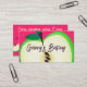 Big apple business cards for cooking classes, chefs, baking or baker, pastry chef, catering, or other food, cooking, culinary business. Green apple with stem and leaves, cut in half to show the seeds. A card to be remembered.