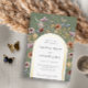 Sage Green Arch Wedding Invitation Foil Invitation. This stylish & elegant boho arch wedding foil invitation features gorgeous hand-painted watercolor wildflowers arranged as a lovely frame. The back includes a beautiful coordinating bouquet with a monogram for the bride and groom. Find matching items in the Sage Green Boho Wildflower Wedding Collection.