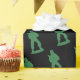 Patterned gift wrap that's as much fun for adults as it is for kids, features the iconic plastic green army men on black background
