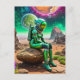 Green astronaut Thinker Pose Postcard