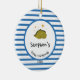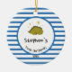 Green Baby Dino | First Christmas Blue Stripe Chic Ceramic Ornament