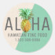 Green & Beige Linen Text Aloha With Pineapple Classic Round Sticker