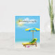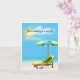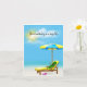 Green pickle on a beach chair with pink sunglasses and cocktail drink for birthday.