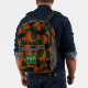 This cool basketball backpack features a random pattern of varied size basketballs turned every which way on a black background - each of the basketballs in the pattern has two recolored panels--one green and one black - customize with the athlete's name & jersey number - by katz_d_zynes