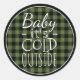 Beautiful, unique, classic, trendy, pretty and decorative forest green and black lumberjack tartan pattern design with a bright red and white border. And fun "Baby Its Cold Outside" quote text written in typography.