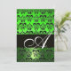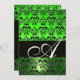 GREEN BLACK DAMASK MONOGRAM ,bright white Invitation