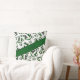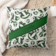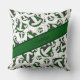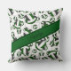 This cute volleyball team colours throw pillow for girls features a pattern of varied size stylized green, black and white volleyballs turned every which way overlying a volleyball net detail graphic - the volleyballs' green and black panels are blended with an artsy, girly floral pattern - personalize her name in a sophisticated handwritten font on a bold, angled, full width green colour strip - background and name strip colours are customizable - by katz_d_zynes