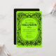 A Halloween Party Invitation with a gothic feel. Features a vintage frame in black, a script font on a green background. Customize with your own details to spread the word about your spooky event! Please browse the Halloween Party Invitations Collection for more designs.