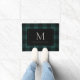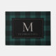 Green & Black Holiday Plaid Monogram & Name Doormat