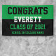 Hang this Green & Black Minimalist Graduation Party Banner to honour your graduate. Personalize with your grad's name, school, and class year. This bold school colours banner features a classic font and plenty of school spirit.