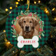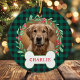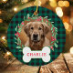 Green & Black Plaid Dog Photo Christmas Wreath Ceramic Ornament