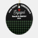 Commemorate your engagement with this charming rustic Christmas ornament from Plaid Perfection. Designed with a split background—classic green and black buffalo plaid on the bottom and sleek black on top—this festive ornament features the phrase *Our First Christmas Engaged* curved along the top. Personalize with the couple’s names and year to create a keepsake that celebrates love and new beginnings. Perfect as a gift for engaged couples or as a special addition to your own tree, this round ornament is a timeless way to mark this milestone and treasure the memory for years to come.