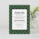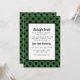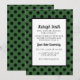 Celebrate your child's move to college with this green with black polka dots college trunk party invitation.